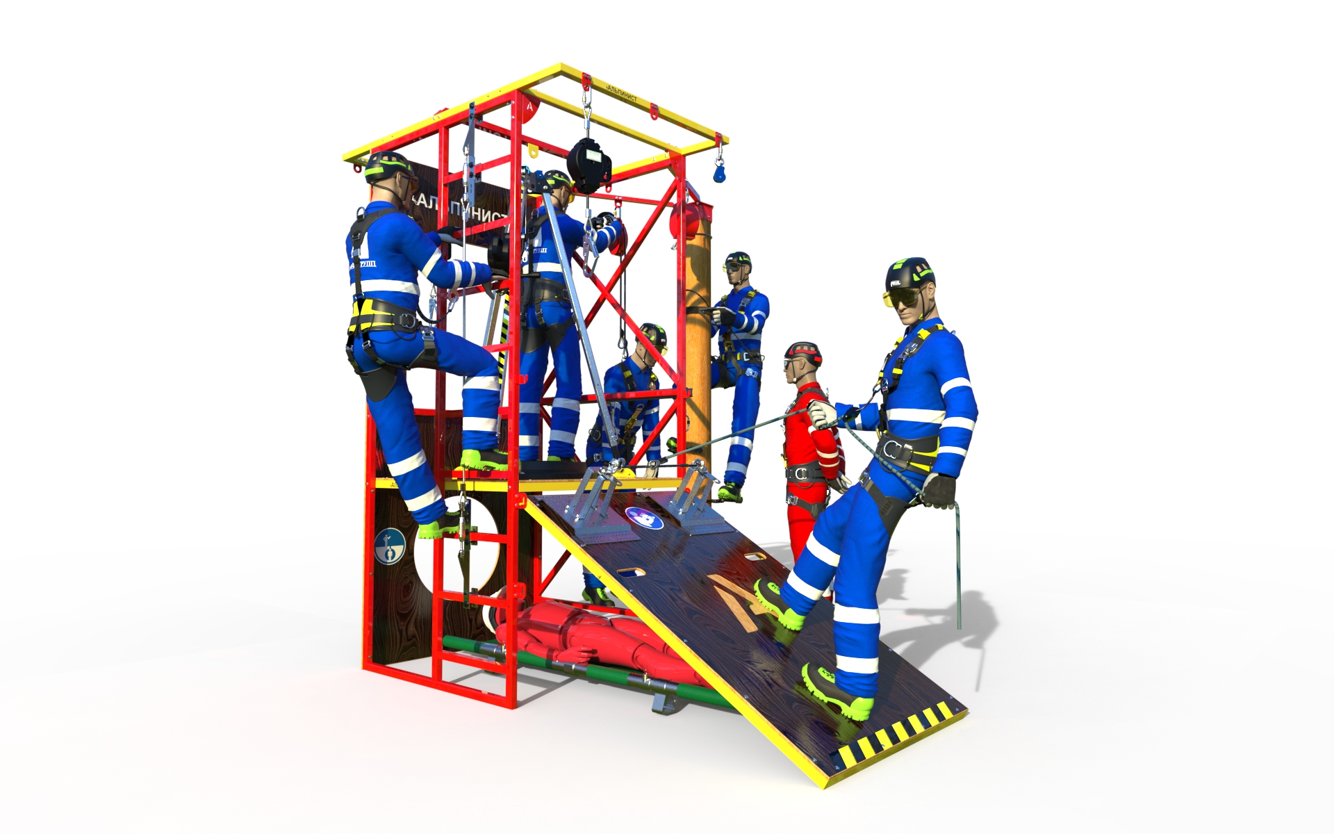 Тренажёр «Альпинист» предназначен для отработки навыков работы на высоте в учебных классах и центрах. Он представляет собой бюджетную и функциональную учебную конструкцию, которую можно легко транспортировать и устанавливать в различных местах для обучения сотрудников предприятий.