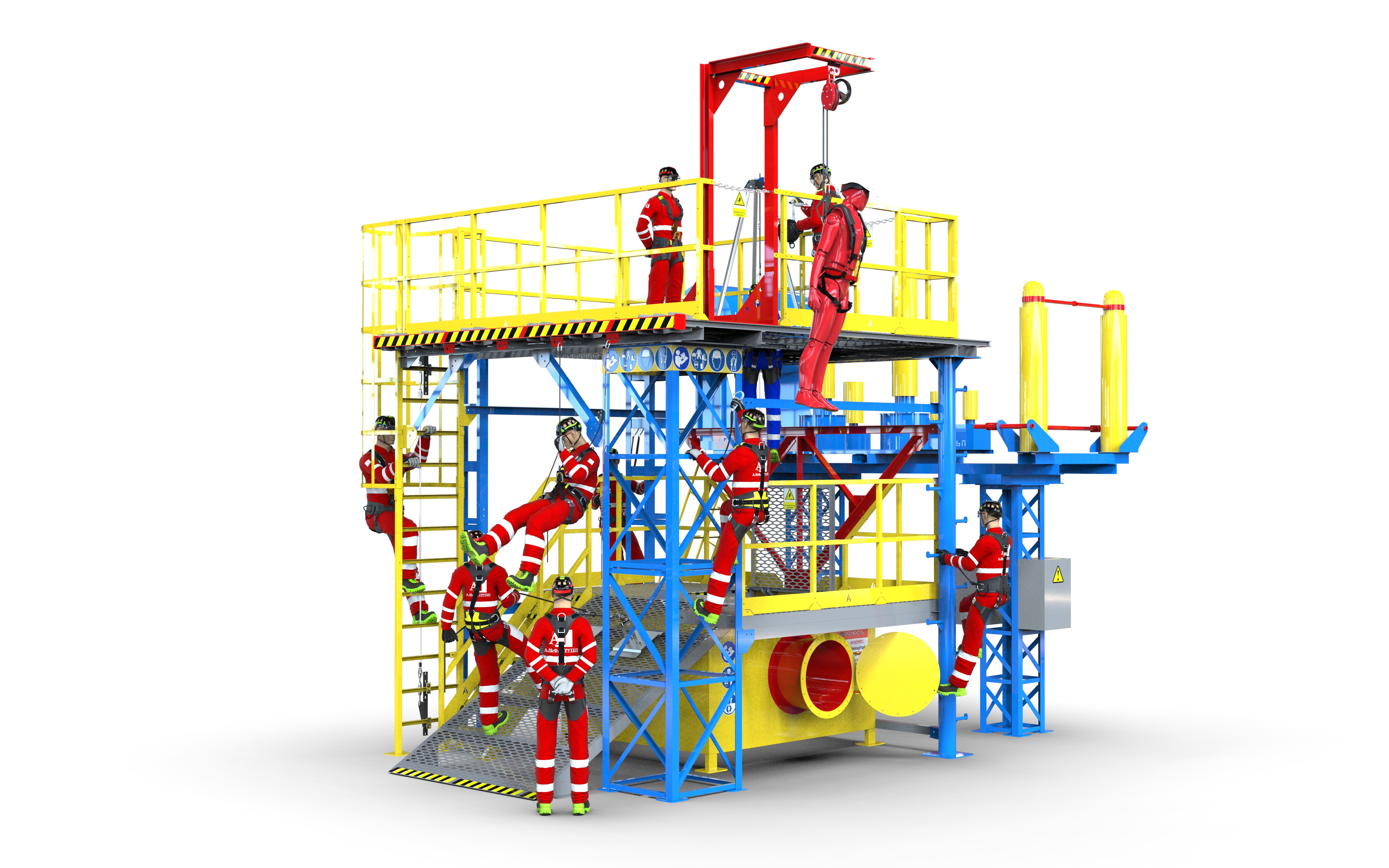 Данный тренажер имеет сборно-разборную конструкцию на болтовых соединениях, что обеспечивает легкость и удобство в сборке, демонтаже и транспортировке. Полигон спроектирован для демонстрации и отработки различных работ на высоте, а также для обучения правильному применению средств индивидуальной защиты (СИЗ).